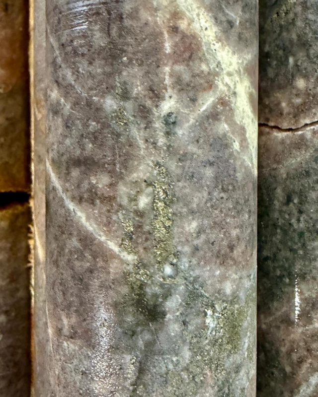 Figure 4: Example Mineralization - Quartz Veinlet and Sulphide at ~14m