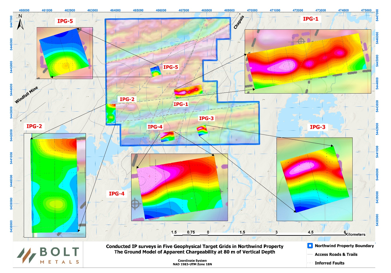 Bolt Metals Completes Induced Polarization Survey at the Northwind Property