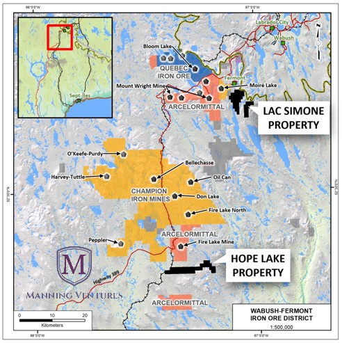 About Manning Ventures Iron Ore Projects (Lac Simone and Hope Lake)