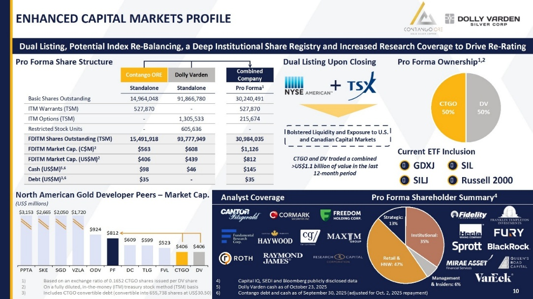 Insider and Institutional Support: All directors and officers of Contango and Dolly Varden, as well as significant shareholders of both companies, have signed voting support agreements in favour of the Transaction, representing approximately 22% of the outstanding Contango shares and approximately 22% of the outstanding Dolly Varden Silver shares.