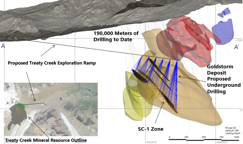 Tudor’s long-term strategy for the advance of Treaty Creek is to focus on the higher-grading gold mineralization of roughly two grams/tonne gold and higher and pursue the potential for development of an underground mine. The next catalyst is the receipt of a permit for the development of an underground exploration ramp, which will enable year-round, cost-effective drilling of the Goldstorm Deposit and the definition of the adjacent SC-1 Zone, which hosts the highest-grading gold encountered to date with surface drilling. (See 2026 Treaty Creek Underground Exploration Program below.)