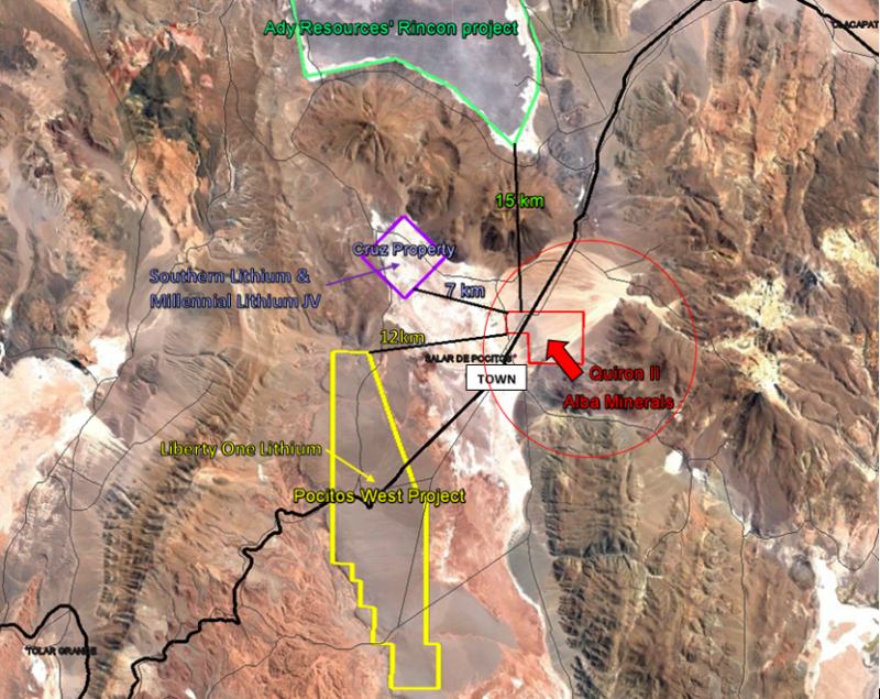 Vancouver, British Columbia / TheNewswire / July 20, 2017 - Alba Minerals Ltd. (“Alba”) (TSX-V:AA; AXVEF:US; Frankfurt: A117RU) is pleased to announce it has signed an option agreement to acquire 100% of the Quiron II lithium project, consisting of 2,421 hectares of prospective exploration property in the Pocitos Salar, Province of Salta, Argentina. The Project is located approximately 7 km South East of Millennial Lithium – Southern Lithium JV Pocitos North Cruz Brine Project and 12 km northeast from the Liberty One Lithium Corp. Pocitos West Project.