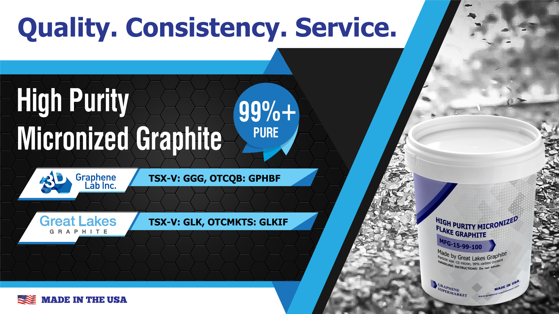 Graphene Laboratories’ CEO Elena Polyakova said, “Our Graphene Supermarket is a well-established brand that has been built over time with a reputation for quality and innovation. We have sold products to over 15,000 customers including virtually all of the Fortune 500 companies in the technology arena. Adding high quality micronized graphite products to our offerings and partnering with Great Lakes Graphite provides multiple long-term benefits and a reliable partner who can supply high-quality USA-made graphite materials.”