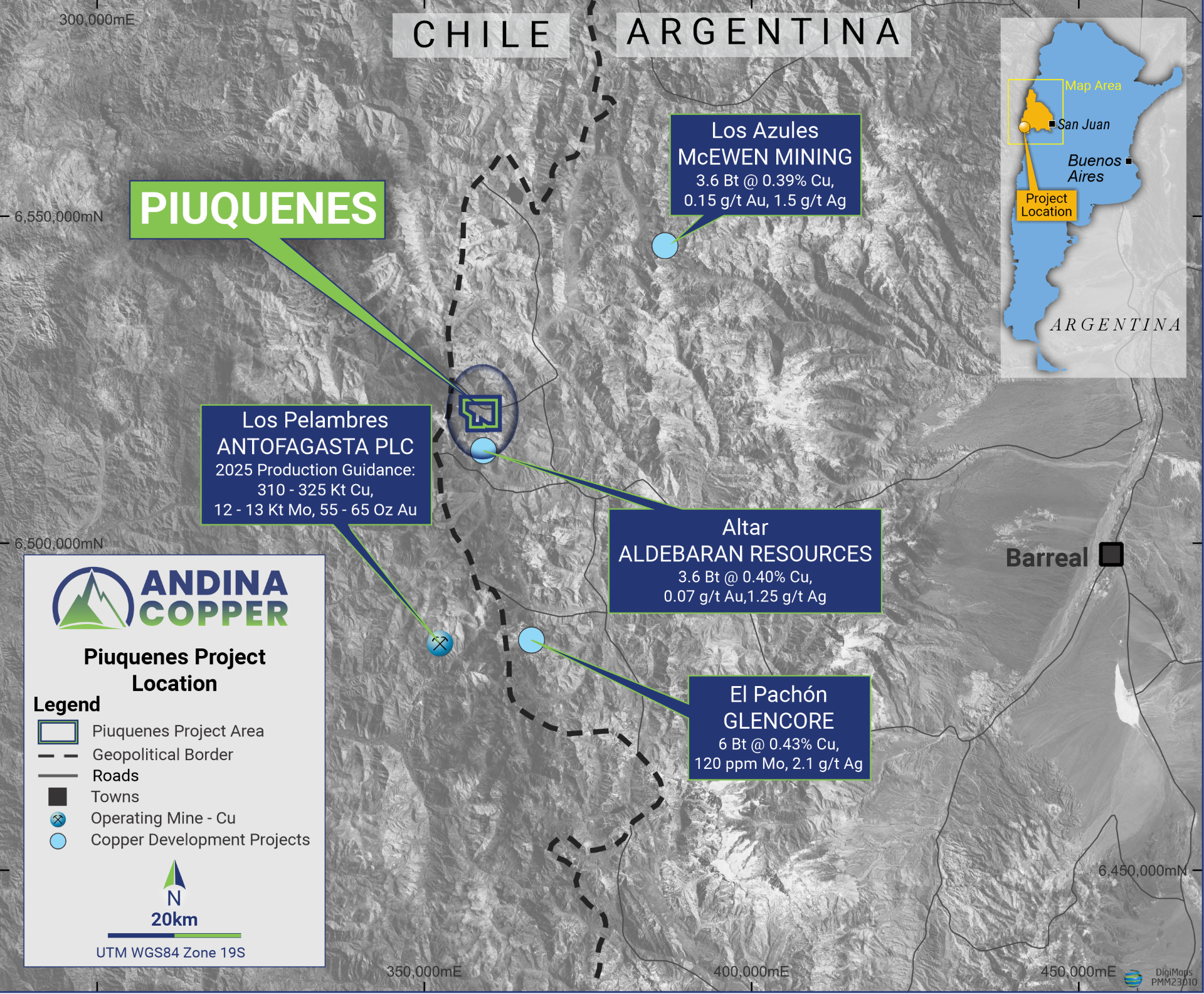 Figure 1: Piuquenes Cu-Au project location map, San Juan Province, Argentina.