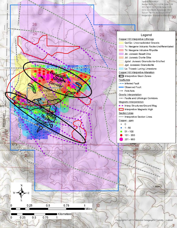 Figure 1: Copper Hill Geology with Gravity and Ground Mag Interpretation Copper Hill