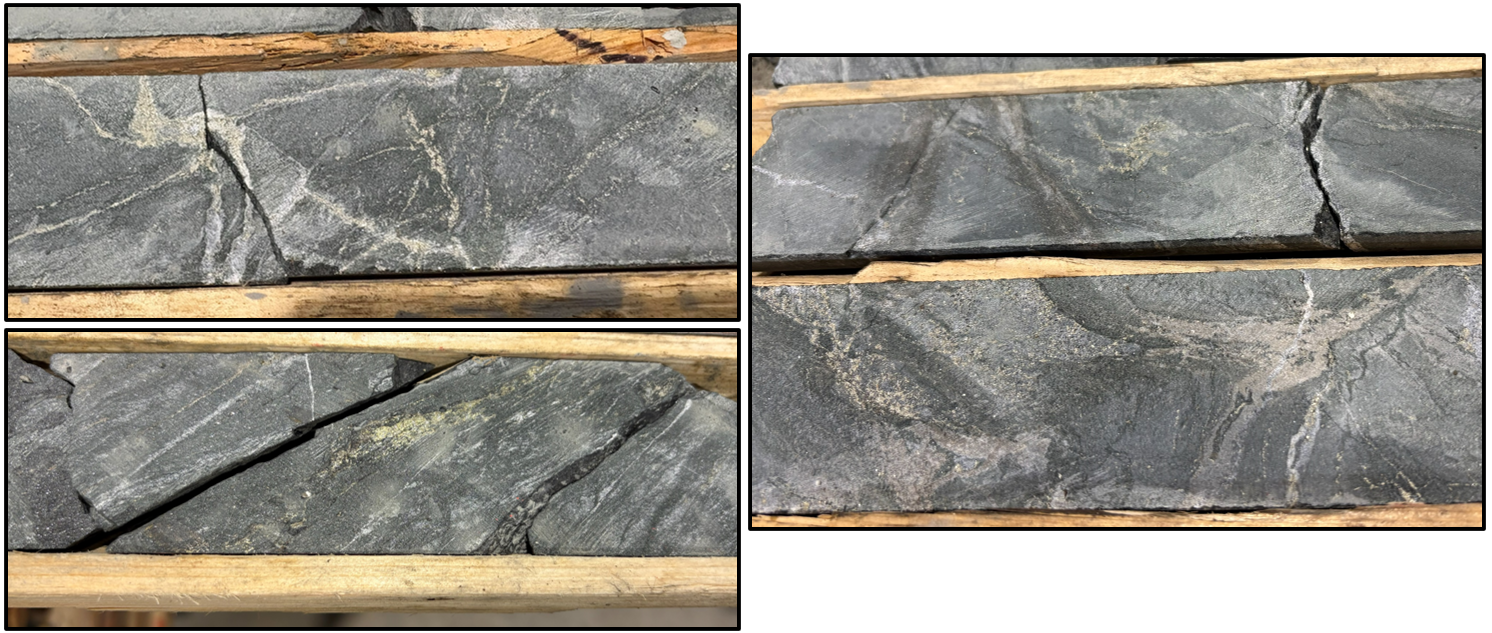 Hole MO-25-24 was the most southeasterly of the holes drilled in the northern part of the property and tested the area over 300 m to the SE of the Morono deposit. This target area was highlighted by previous prospecting work by Vior Inc. that identified Au-Cu rich boulders on surface. Hole MO-25-24 intersected multiple anomalous Au-Ag-Cu intervals over much of the length of the drill hole. The results of this hole highlight a slightly different style of mineralogy than that previously seen on the property, with a good correlation of Au-Ag-Cu assays over multiple intersections throughout the hole. This style of Au-Ag-Cu mineralization is similar to a recent sulphide zone reported from drilling in the northern part of the property, which included 8.67 g/t Au, 203.0 g/t Ag and 2.26% Cu over 0.6 m in hole MO-25-15 (refer to the Company’s press release date November 25, 2025). The host rocks in MO-25-24 are more typically sheared mafic volcanics with sulphides along the fractures and associated with quartz veins. The drill hole indicates excellent potential for a larger deposit and the possibility of expanding the mineralization towards the east within the dilation zone, in an area that remains largely untested.
