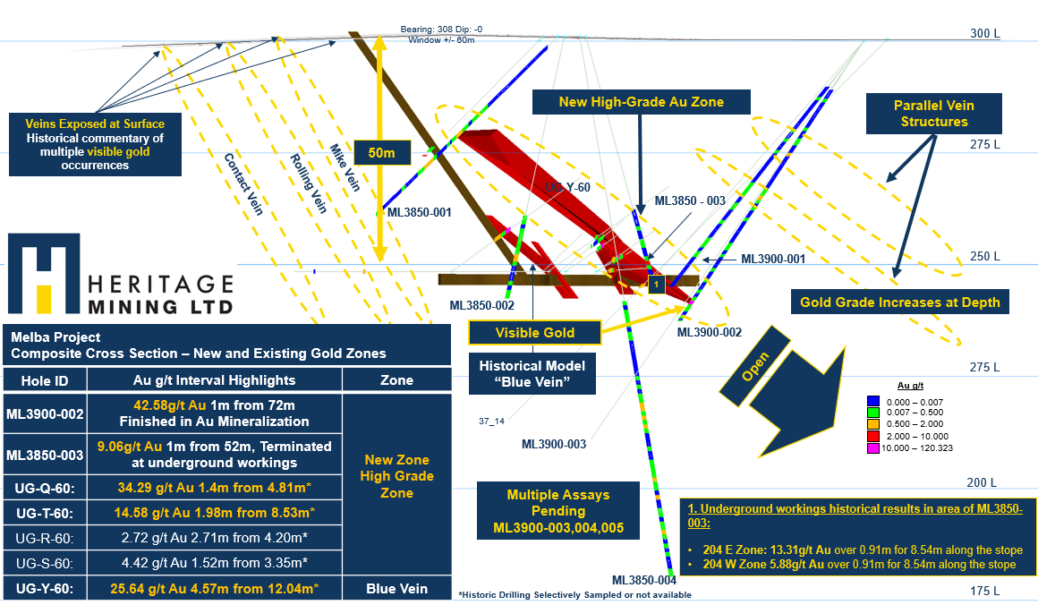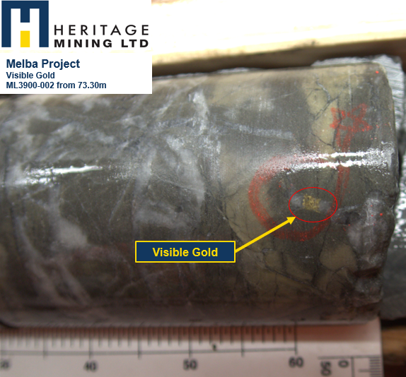 VANCOUVER, BC, February 10, 2026 – TheNewswire - Heritage Mining Ltd. (CSE: HML FRA: Y66) (“Heritage” or the “Company”) is pleased to announce confirmation of Visible Gold in Core in previously sampled Diamond Drill hole ML3900-002, outside the interval previously announced in press release dated February 9, 2026 at the Melba Mine Project (“Melba”) with its ongoing diamond drill program. Coarse gold has been identified in half core of ML3900-002 at 73.3m, downhole of the recently announced 42.57g/t Au over 1m from 72m (See press release dated February 9, 2026).