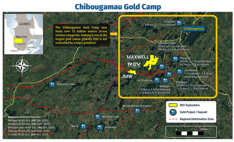 Mr. Jordan Potts, REV CEO, commented: “Receiving our drilling authorization and completing the geochemical program are significant milestones for REV, not to mention the recent doubling in size of the JMW land package. Together, these achievements set the stage for a focused and data-driven drill campaign at JMW. We’re very encouraged by what we’re seeing across the broader Chibougamau Gold Camp. With gold prices at record highs, this is an excellent time to be advancing exploration in Quebec.”