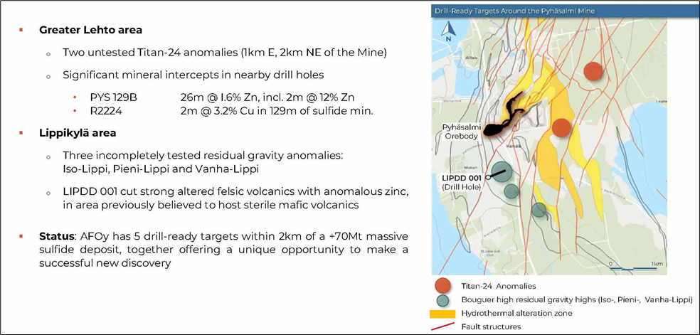 In addition to the Lippikylä acquisition, The Company, through the AFOy partnership, acquired the KKS exploration reservation, covering three VMS prospects located 20-30 km NNW of the Pyhäsalmi Mine.