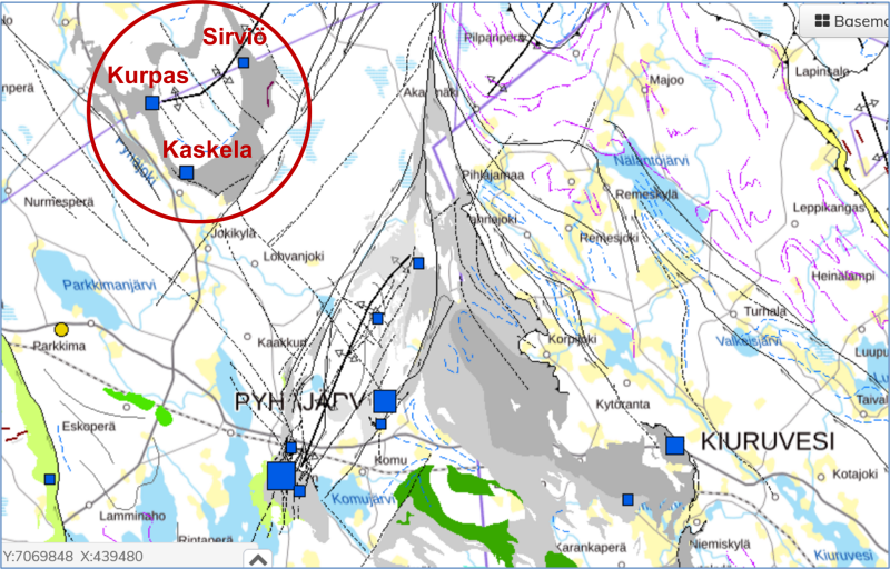 Outokumpu discovered mineralization at the Kurpas location in the early 1960’s, and worked the prospect intermittently through the end of the 1980’s. Limited drilling to 150 meters depth outlined several lenses of massive sulfide mineralization along a strike length of 700 meters of strongly altered, typical volcano-sedimentary host rocks. No further work is known since that time.