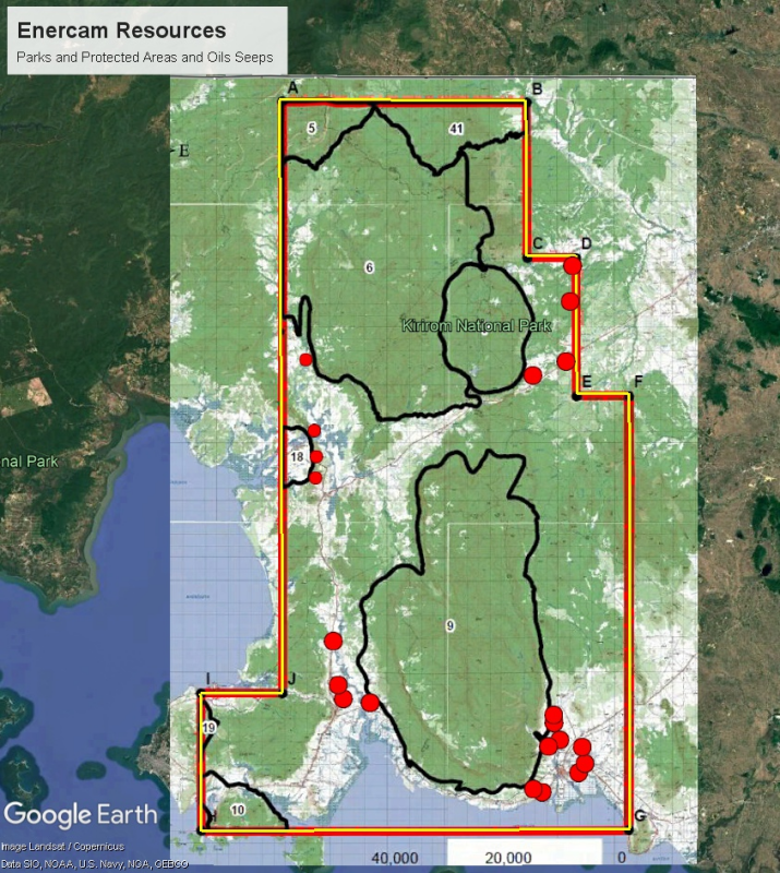 Figure 1 Retained Area Outside Parks with Oil Seeps Marked in Red