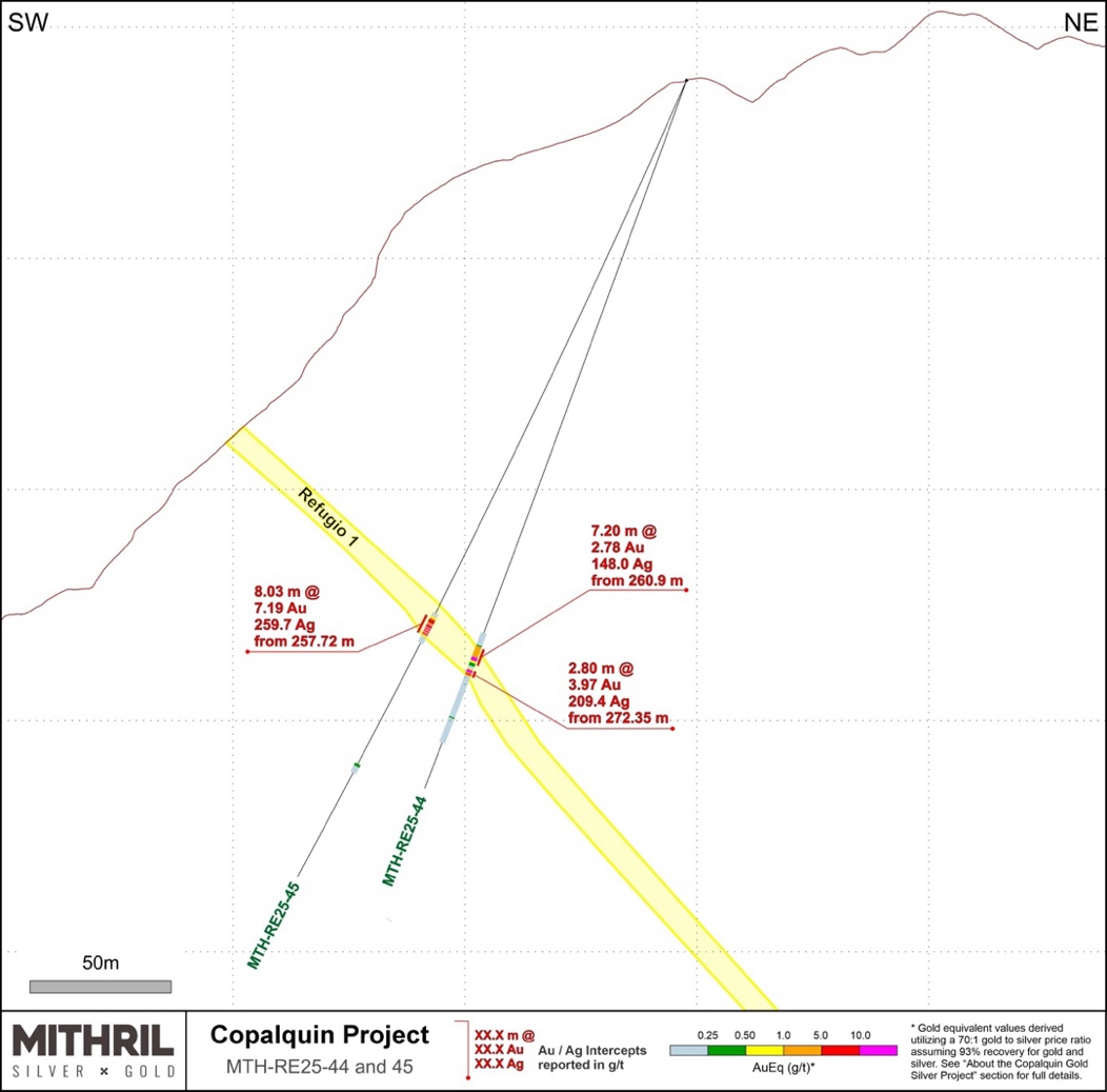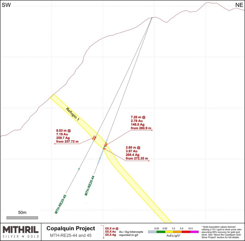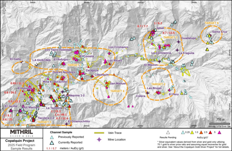 Mithril Reports 10.9 G/T Aueq (7.19 G/T Gold, 260 G/T Silver) Over 8.03m, Extending Target 1 Area By 300 Metres, At Copalquin, Mexico