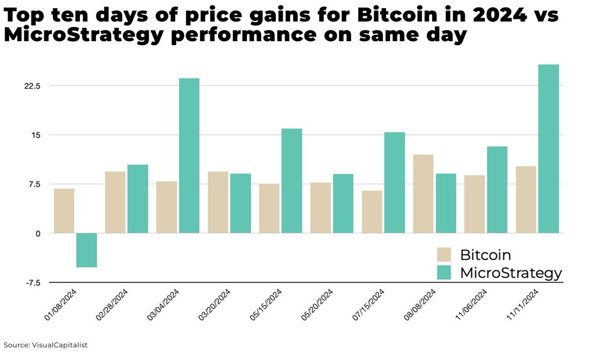 The company uses shares, convertible bonds and leverage to buy more Bitcoin, which has led to the company's stock even outpacing the value of Bitcoin.