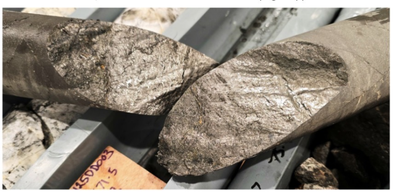Figure 5: High grade graphitic metasediment zone returning 3.7m @ 22.19% TGC (MI25DD04,