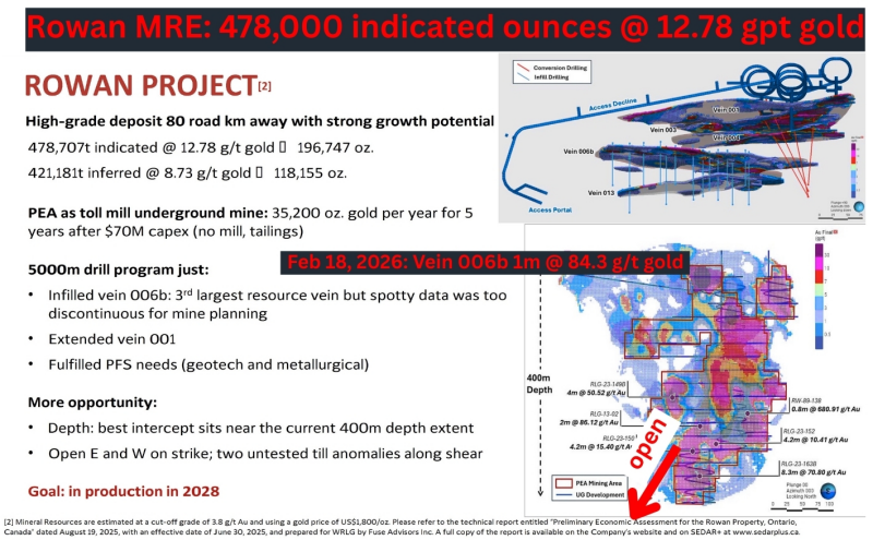“Red Lake gold systems have deep roots, and we believe the vein system at Rowan will continue to grow with additional drilling,” stated Williams in the February 18, 2026 press release. “West Red Lake is fortunate to have a portfolio of 100% owned quality assets in a premier jurisdiction that will support our vision of becoming a 100,000 ounce per year gold producer in Red Lake by 2028.”