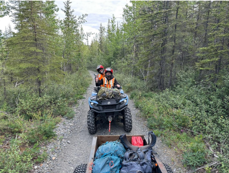 Figure 2: Image showing the loaded ATV trailer and the trailing ATV with field crew members.