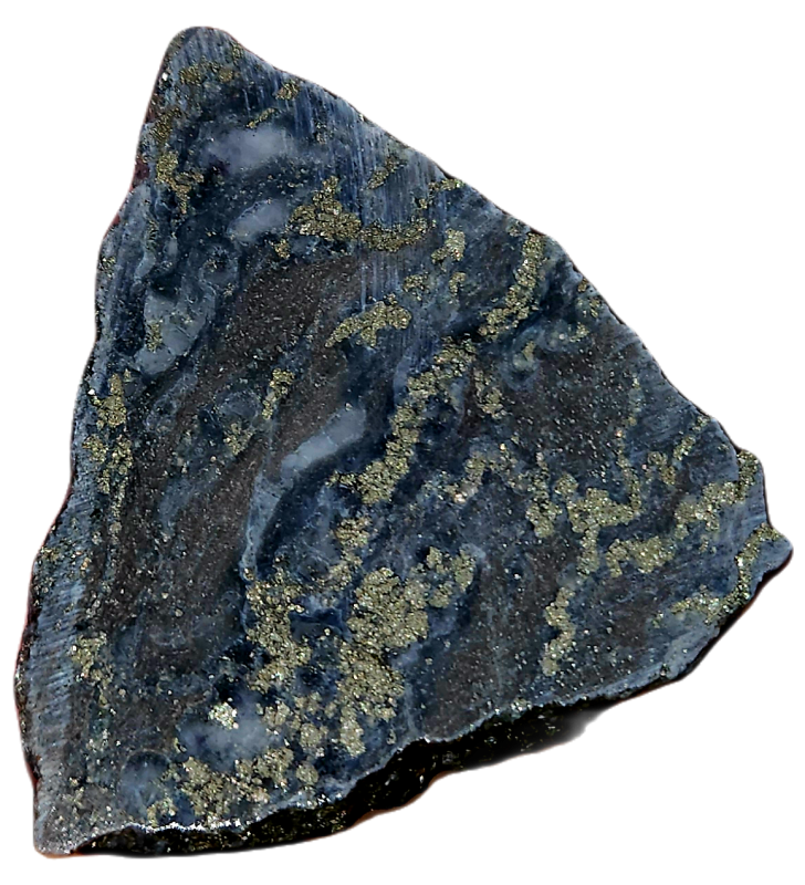 Tom's shaft wall which used to be partially flooded, road building drained shaft which is 4-5m deep Patch of semi-massive pyrite with minor stringer chalcopyrite woven through coarse pyrite. Host is silicified schist with quartz. |