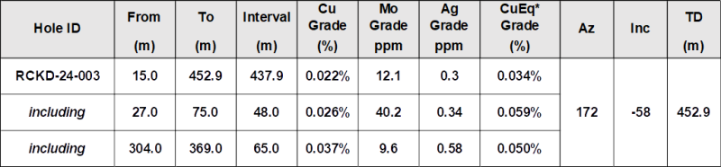Table 3 Drill results from Kendal Project RCKD-24-002