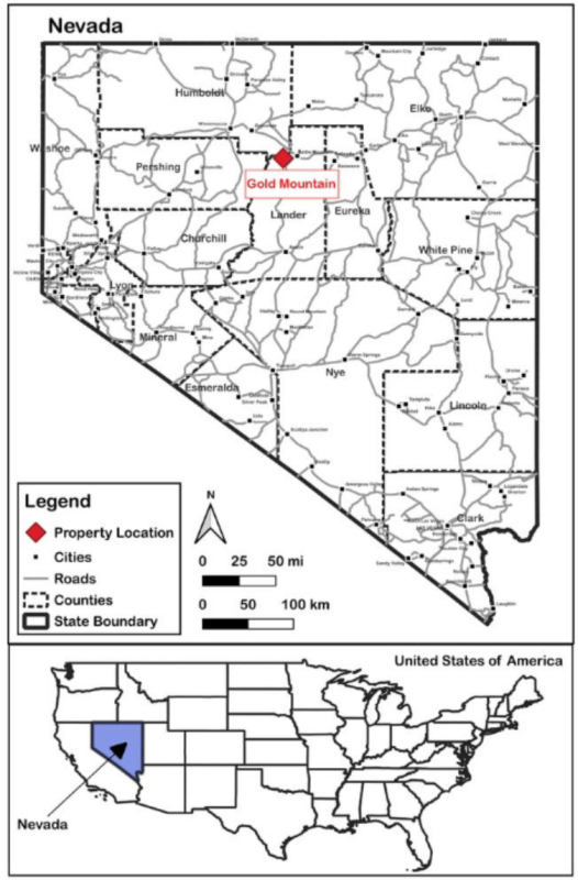 Figure 1 - Location map showing the location of the Gold Mountain project.