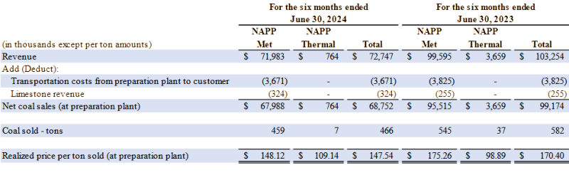 “With the operational improvements taking shape and consistent highwall mining activity in the near term, the Company expects to reduce our operating costs per ton sold to generate positive margin in a number of different pricing scenarios. We reiterate our previous statement that we expect the impact of the cost improvements to be fully realized in the third quarter of 2024 with production in line with our projected operating levels.”