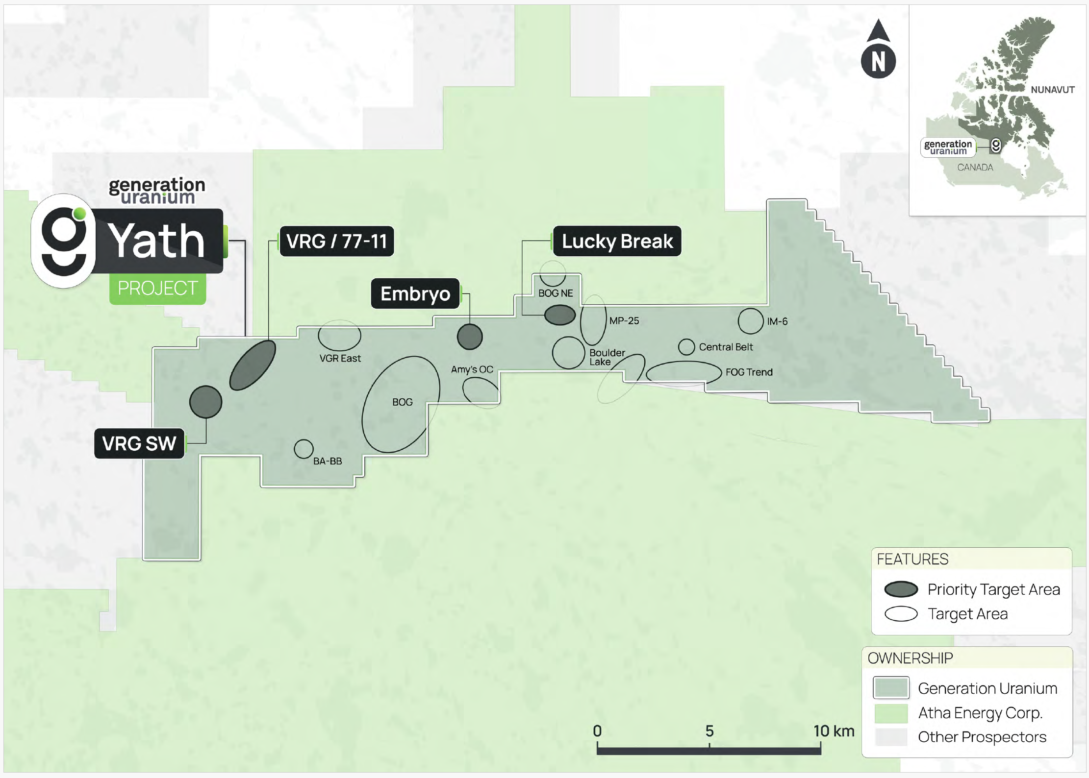 Generation Uranium is a Canadian resource exploration company with a focus on Uranium. The Company is advancing its 100-per-cent-owned Yath uranium project, strategically located in Nunavut's Angilak district, one of Canada's most active emerging uranium camps. With a robust pipeline of high-priority exploration targets and exposure to proven uranium-bearing corridors, Generation is well positioned to contribute to the future supply of clean nuclear energy.
