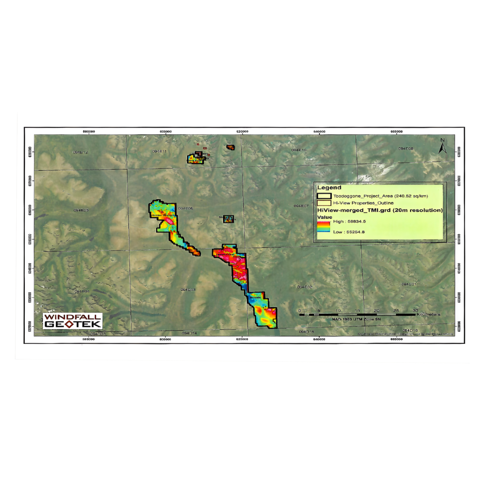 Figure 2. Windfall Geotek Analysis Area of Toodoggone Projects