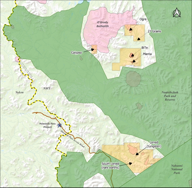 Figure 3 – Rackla Metals properties and exploration targets in western NWT.