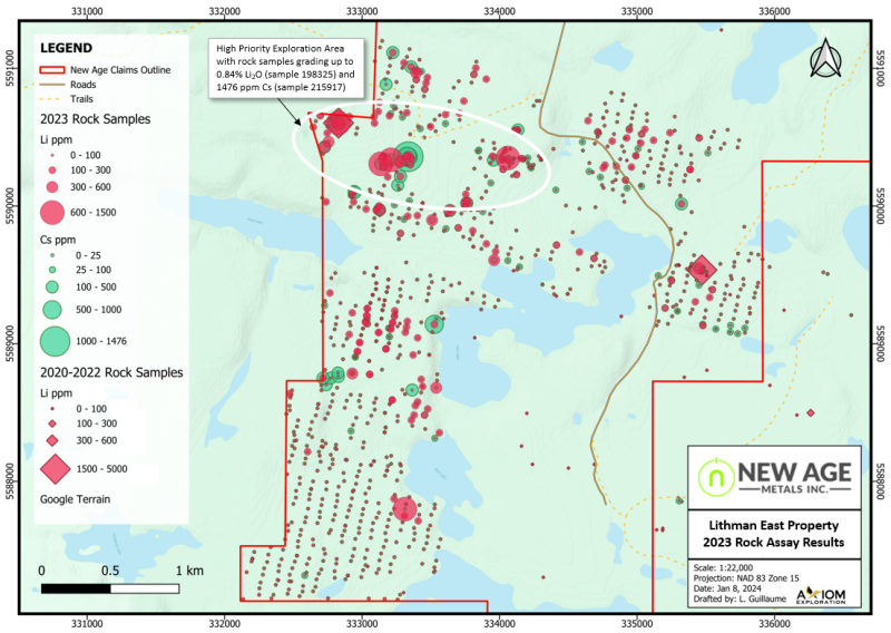11th January 2024 – TheNewswire - Rockport, Ontario - New Age Metals Inc. (TSXV:NAM); (OTC:NMTLF); (FSE:P7J.F) (“NAM” or the “Company”) in conjunction with its Farm-in/Joint Venture agreement with Mineral Resources Ltd. (“MinRes”) is pleased to announce that all assay results have been received from the extensive summer exploration program on the Company’s Winnipeg River-Cat Lake Lithium Projects of Southeast Manitoba.