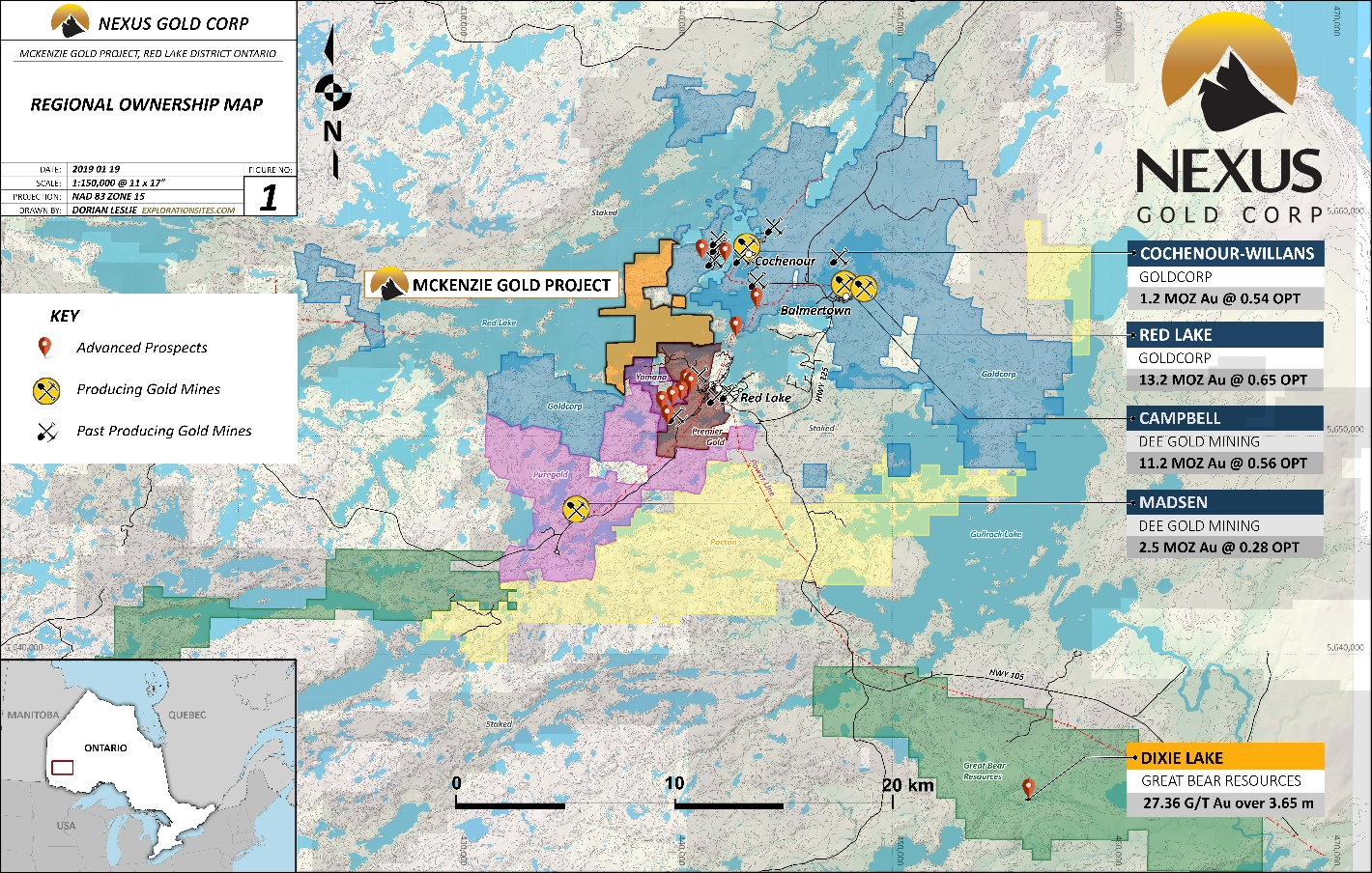 Vancouver, Canada / TheNewswire / June 25, 2019 - Nexus Gold Corp. (“Nexus” or the “Company”) (TSX-V: NXS, OTCQB: NXXGF, FSE: N6E) is pleased to announce it has received assay results from the initial ground reconnaissance program at the Company’s 100% owned, 1,348-hectare, McKenzie Gold Project, located at Red Lake, Ontario.