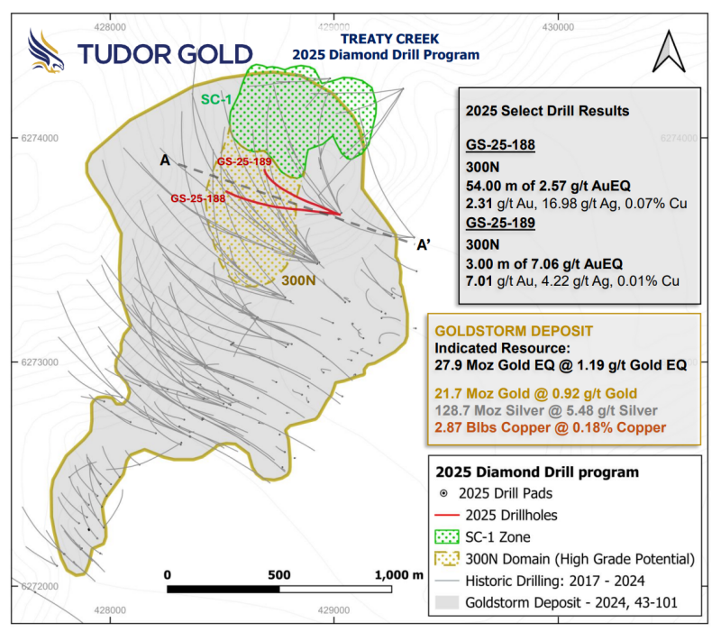 Earlier, in a news release dated Sept. 8, 2025, Tudor released results from the first two holes of the 2025 drill program at Treaty Creek, as follows: