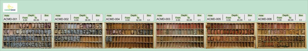 Figure 3A. Air-core sample record trays for holes MAD 1 -6 corresponding to the section in Figure 3 above.