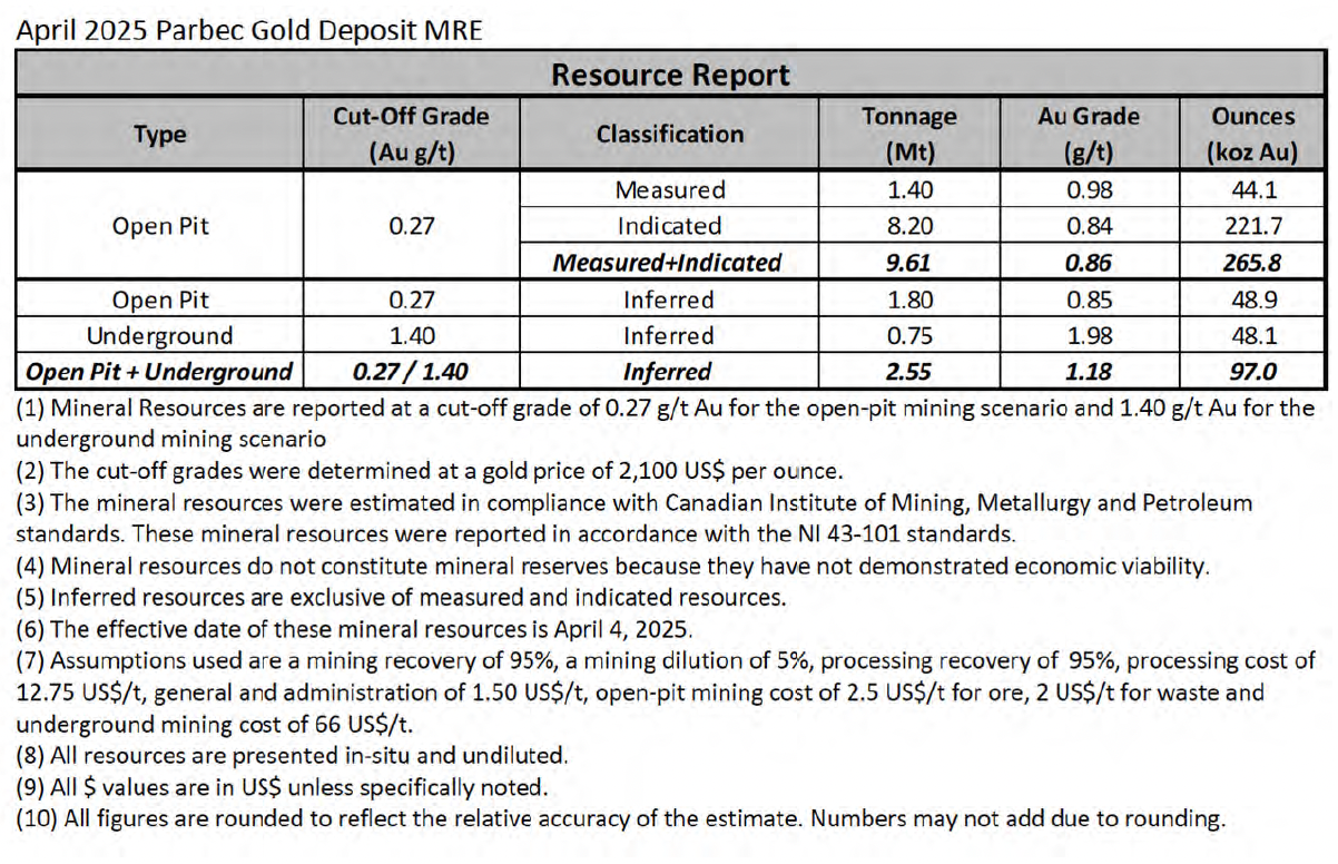 Renforth Resources is a junior exploration and development company focused on advancing gold and polymetallic projects in Québec’s Abitibi mining district. Its flagship asset, the wholly-owned Parbec Gold Deposit — located beside Agnico Eagle Mines Ltd.’s Canadian Malartic mine — currently hosts 265,800 ounces of gold in the Measured and Indicated categories within 9.61 Mt grading 0.86 g/t Au and and 97,000 ounces in the Inferred category within 2.55 Mt grading 1.18 g/t Au, within an open-pit scenario using a cut-off grade determined using a value of US$ 2,100 per ounce of Gold in April 2025.