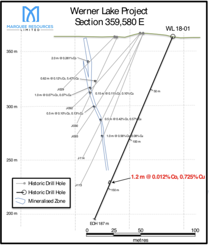 -Marquee has now completed 8 holes for 1,527m at the Werner Lake Project as part of its phase one drilling campaign.